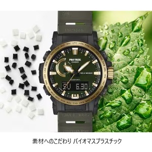 ケースやバンドには環境負荷低減に貢献するバイオマスプラスチックを採用。自然を愛する