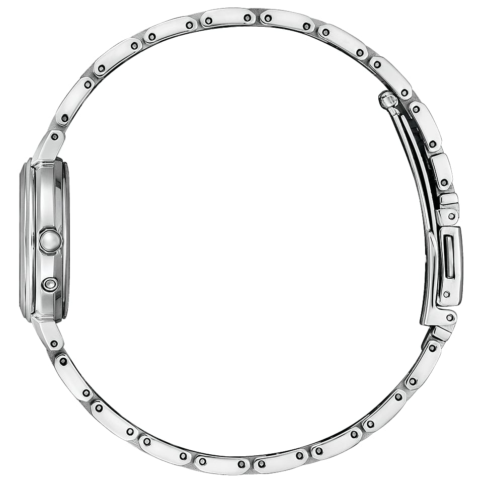 草花のようにのびやかで柔らかな印象のインデックスと、光の角度によって淡く繊細に浮き出るチェックパターンの文字板が女性らしい手元を演出します。