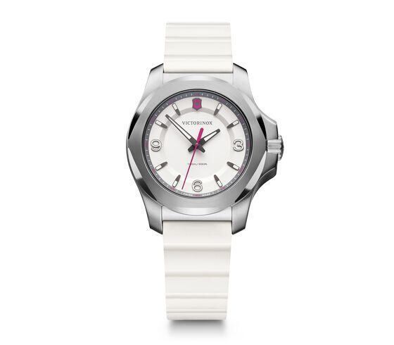 軽量なボディに冒険を愛する心を秘めたタフなウォッチ、I.N.O.X. V。未来志向の機能と美しいフォルムを備えたこのスイス製ウォッチは、フェミニンな時計の新たなスタンダードです。I.N.O.X. Vシリーズに受け継がれてきた大胆でアイコニックなデザインを保ちながら、世界中を旅する現代の女性のために生まれ変わりました。取り外しや付け替えが簡単にできるリリースバーシステムを備えた切れにくいラバーストラップを採用し、32%の軽量化と33%のスリム化を実現。女性の腕に快適にフィットします。