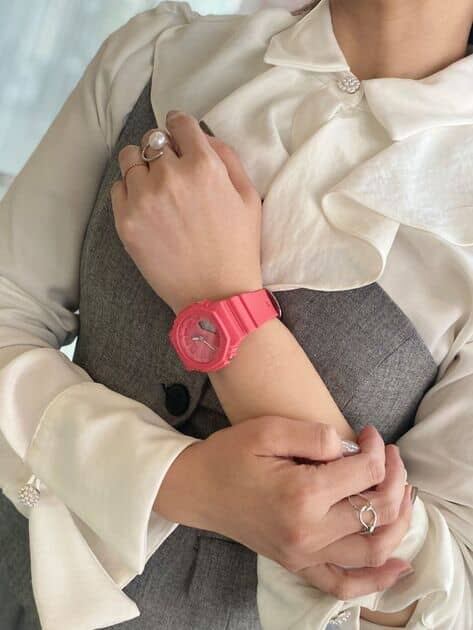人気のデジタル・アナログコンビモデルGMA-S2100を更に小型化したGMA-P2100シリーズ。同時にバンドの長さも短くすることで、手首の細い方にもフィットするよう装着性を高めました。