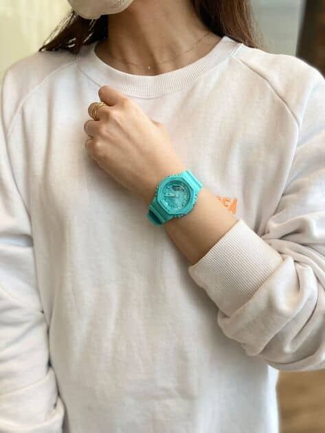 人気のデジタル・アナログコンビモデルGMA-S2100を更に小型化したGMA-P2100シリーズ。同時にバンドの長さも短くすることで、手首の細い方にもフィットするよう装着性を高めました。