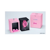 裏蓋にもバービーのシンボルマークを刻印。さらに、オリジナルデザインのスペシャルパッケージは、バービードールの箱をイメージしており、バービーを取り出す際のワクワク感を楽しんでいただきたいと、思いを込めました。